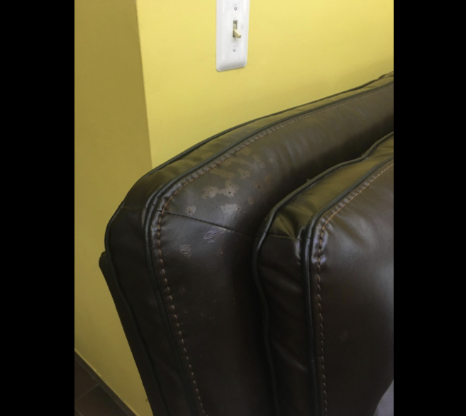 I should have taken a before photo so I could show the difference but I didn’t. We had one big tear in our “pleather” sofa as well as many scratches and small holes. Most were made by our cat walking on the couch and her nails just made little pin holes. The tear was about the size of a quarter and was caused by a bug spray coming in contact with the couch and delaminating it. I have to say, this product does a better job fixing large holes/tears than small. Our couch is chocolate so I used the black. I also did’t need the patch material. Applied one coat, gave about an hour to dry then reapplied. You can’t see the big hole unless you look for it. so much better than before.