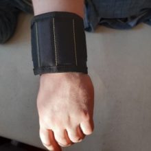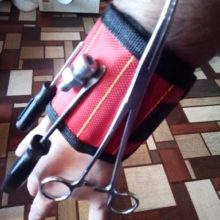 Wonderful wristband. The quality is excellent, well holds metal scissors, knives, all sorts of screwdrivers. Now you do not have to keep anything in your teeth.