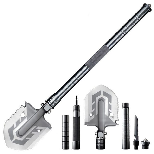 Our do-it-all shovel can function as an emergency tool to fix something with its 23 capabilities.