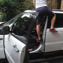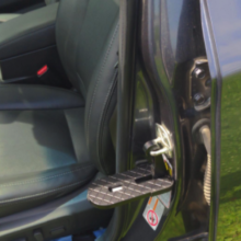Simply hook the Universal Car Footstep over the U-shaped hook on the door striker of each car’s front door.